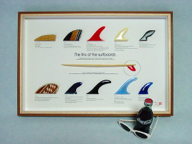 1930年代のウッドフィンから1971年のDick Brewer ワイドベースまで10種類の美しいフィンのセットです。